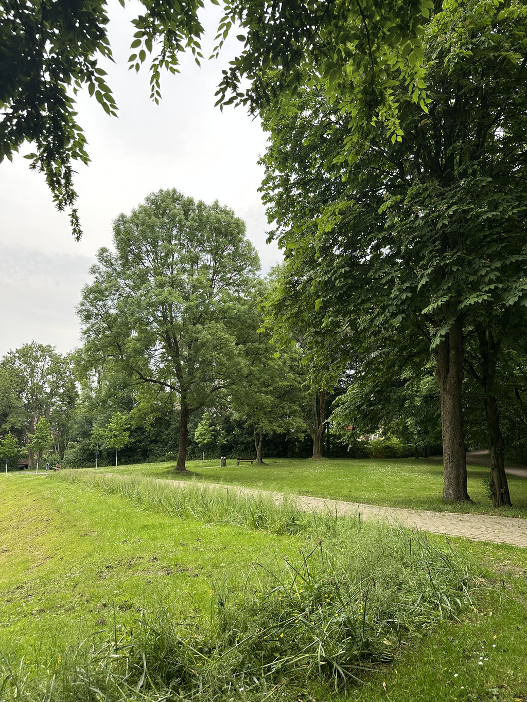 Hinter dem Garten befindet sich die "Borgholzwiese", ein kleiner Park im Inneren der Siedlung.